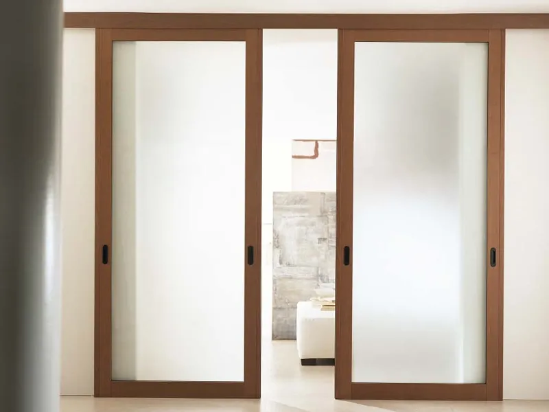 Porte scorrevoli in legno e vetro