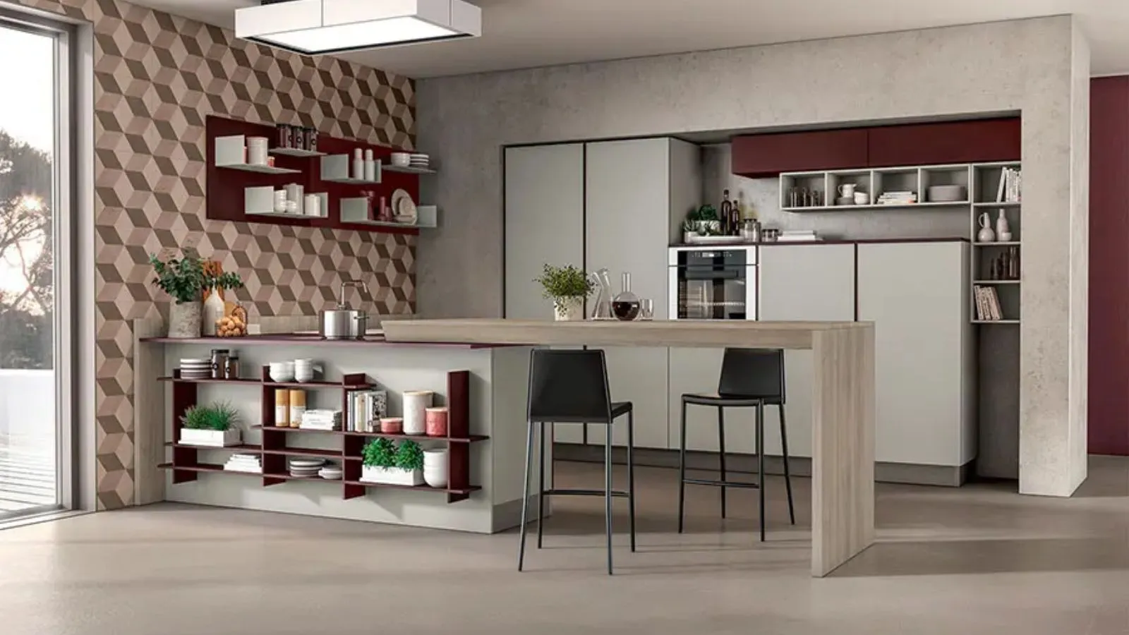 Queta soluzione offre una pratica e ampia superficie aggiuntiva utile per pranzare oppure lavorare da casa. Il risultato è una cucina in perfetto equilibrio tra design e funzionalità.