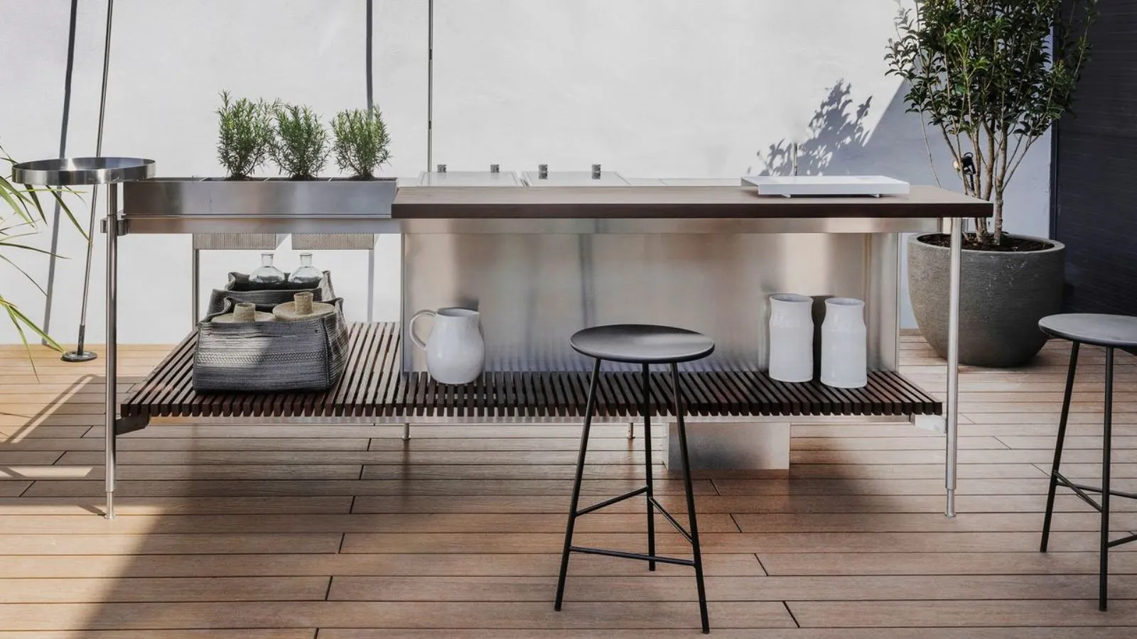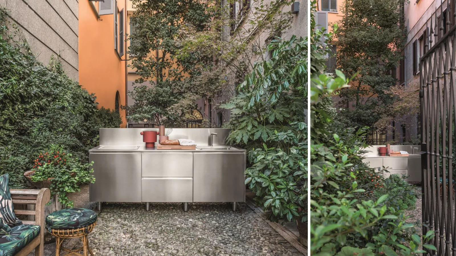 - L’acciaio inox è tra le soluzioni più richieste perché resiste bene agli agenti atmosferici, ha un aspetto contemporaneo ed è facile da igienizzare.