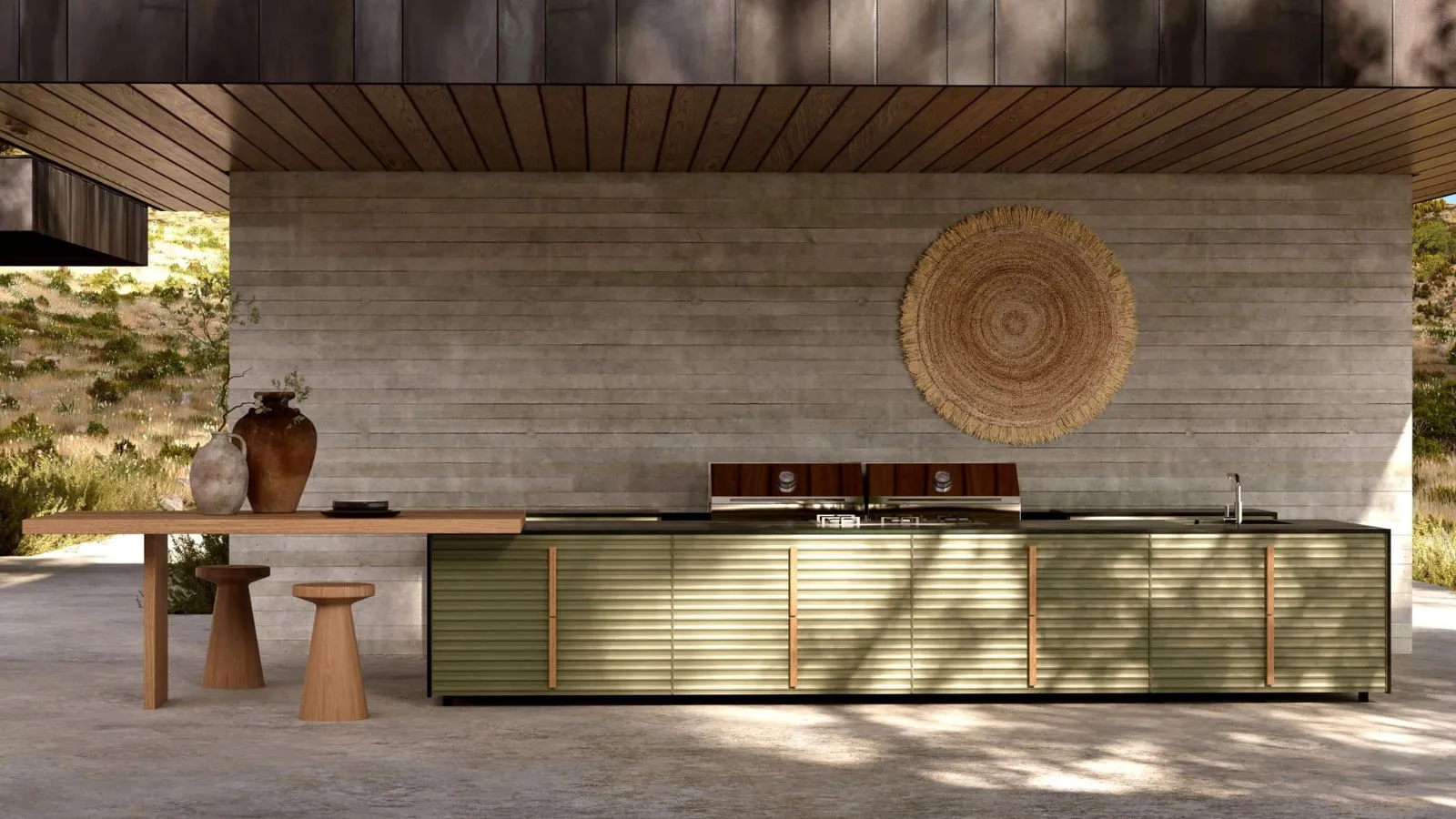 Le cucine esterne da giardino devono essere prima di tutto resistenti. Sono esposte a sole, umidità, sbalzi termici e polvere. Per questo servono materiali specifici e finiture adatte a garantire durata nel tempo.