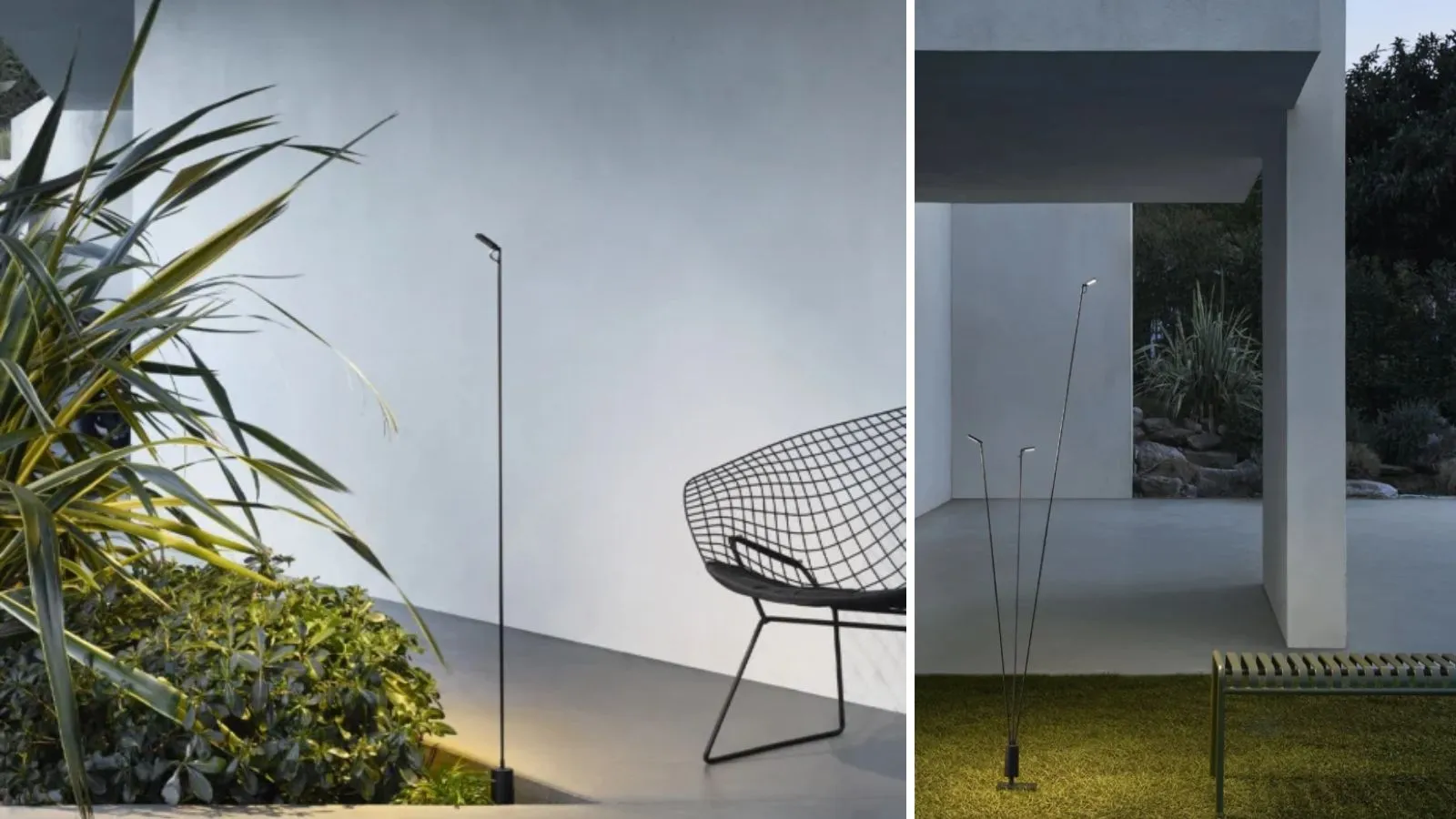 Flia di Luceplan è una lampada da terra per l'oudoor con stelo in carbonio. È disponibile in configurazione singola o a più steli.