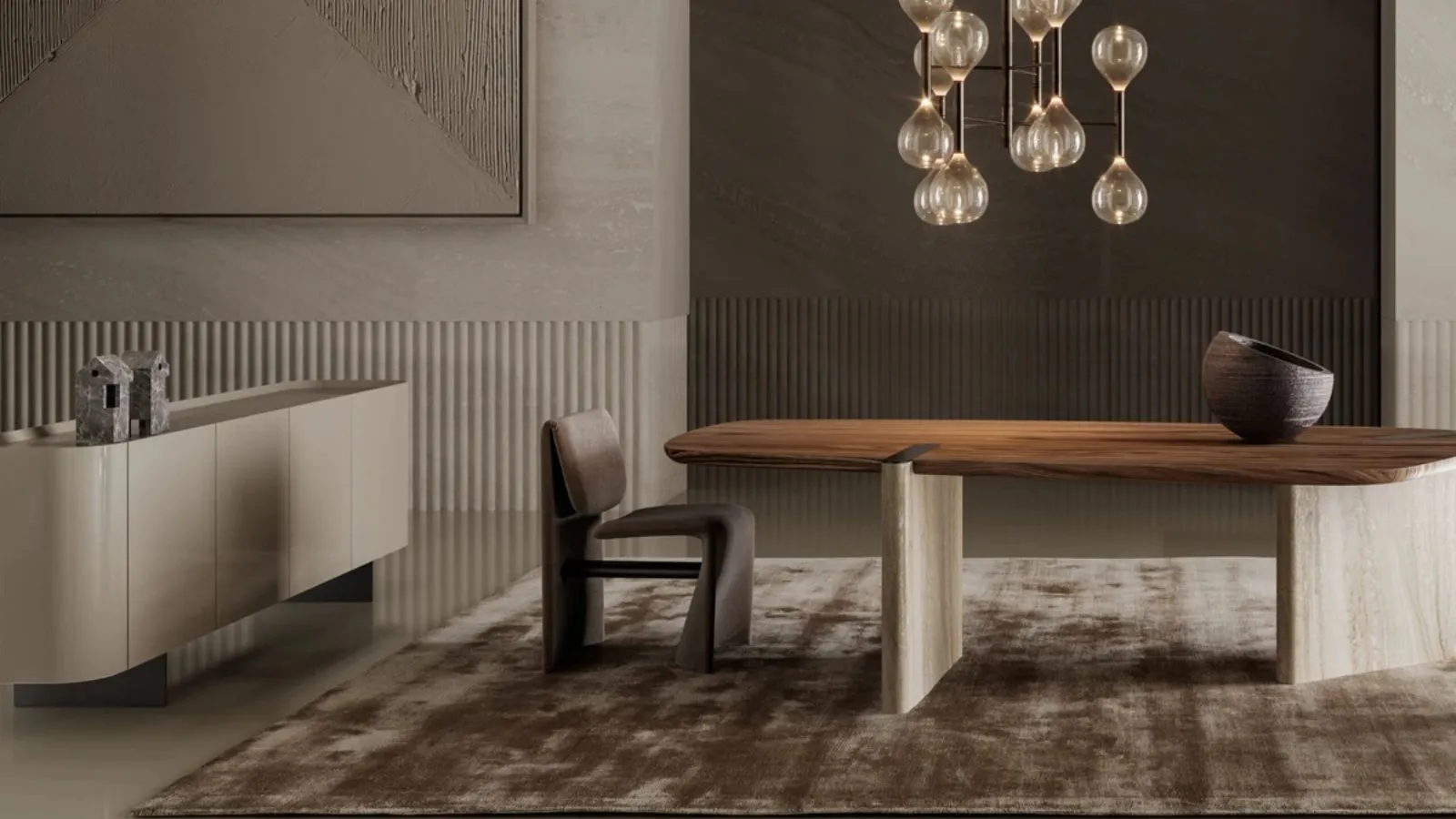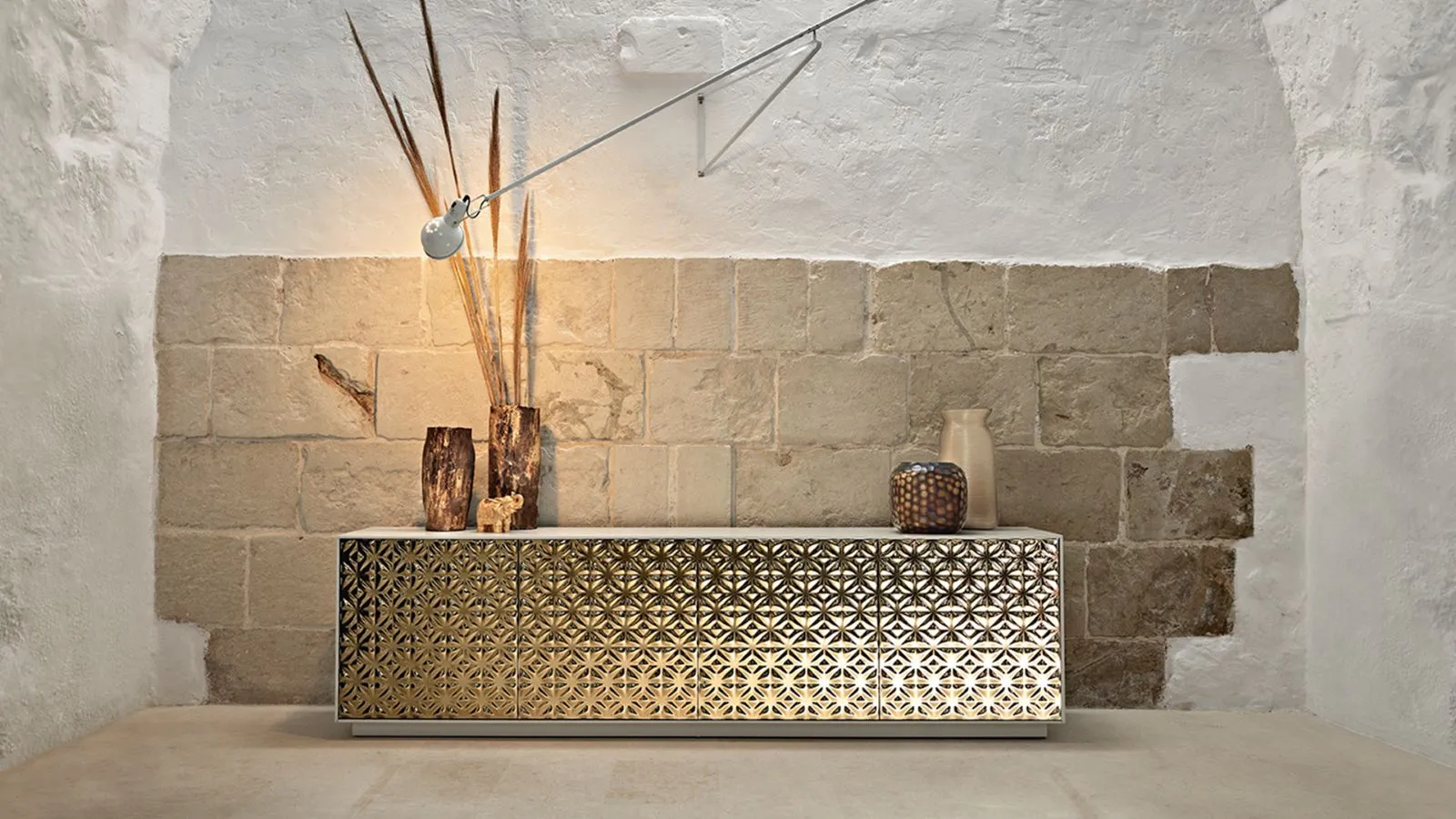 Vengono impiegate materie prime eccellenti, sapientemente lavorate attraverso processi e tecniche all'avanguardia. Le superfici, i contrasti cromatici e ogni singolo particolare sono messi in risalto. Ne deriva un mobile dalla bellezza scultorea, capace di nobilitare l'ambiente con una presenza inconfondibile.