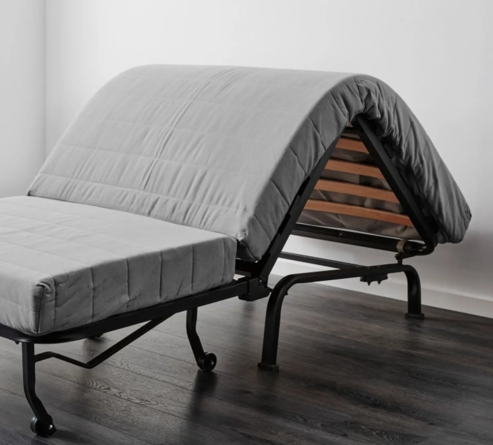 Un letto in più è sempre utile. In tutte le case. Perché sempre può capitare che qualcuno si fermi a dormire per la notte. Chi ha una casa ampia, non si pone alcun problema: organizza la stanza degli ospiti con tutto ciò che occorre. L’alternativa è il divano letto; i modelli di oggi sono spesso caratterizzati da un elegante design e da un’efficienza concreta. Però c’è chi non dispone dello spazio sufficiente neanche per il divano letto. Oppure chi non ama questo tipo di imbottiti. E’ dinanzi a una simile situazione che si sceglie la poltrona letto. Le poltrone letto sono poco ingombranti; molto comode quando restano chiuse e capaci di trasformarsi in pochi attimi in un letto singolo completo di rete e materasso. Una manciata di minuti è poi sufficiente per ripristinare lo stato di partenza. Per chi non vuole e/o non può spendere molto le poltrone letto Ikea rappresentano un’ottima soluzione. Ottima soluzione anche per un monolocale piccolo o, al contrario, per un open space. L’assortimento Ikea non è particolarmente ricco ma risulta comunque soddisfacente: cominciamo con il mostrarvi Lycksele Lövas, la più economica. Costa soltanto 169 euro, ha la struttura in acciaio, il materasso in poliuretano espanso e queste sono le sue dimensioni: larghezza 80 cm, profondità 100 cm, profondità sedile 60 cm, altezza sedile 39 cm, altezza 87 cm, larghezza letto 80 cm, lunghezza letto 188 cm, lunghezza materasso 188 cm, larghezza materasso 80 cm, spessore materasso 10 cm.