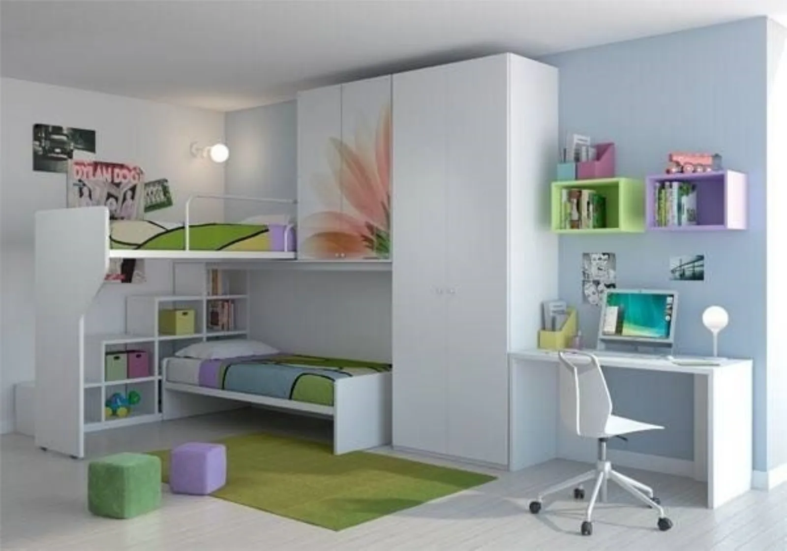 I bambini di oggi hanno esigenze molto particolari. Vogliono essere alla moda e avere una cameretta di cui vantarsi con gli amichetti. Per questo motivo i genitori sono spesso alla ricerca delle soluzioni più pratiche e allo stesso tempo più originali per accontentare i loro piccoli principini e principesse. Ma quando lo spazio è poco all'interno di una stanza, tutto diventa più problematico. Una soluzione ideale sono gli armadi a ponte per camerette. Nella parte sotto il ponte è possibile collocare uno o più letti, a volte anche quelli scorrevoli che si possono comodamente richiudere durante la giornata. Se invece lo spazio per il letto è già stato individuato altrove, sotto il ponte si potrà mettere una scrivania con degli scaffali per riporre i libri e tutti gli accessori utili al bambino nel momento in cui dovrà fare i compiti ma anche per i momenti dedicati alla creatività. L'armadio a ponte VipP06 di Dielle con una praticissima cabina ad angolo, che fa guadagnare ancora più spazio all'interno della stanza, ospita nella parte sotto il ponte un letto doppio scorrevole praticissimo. Armadio a ponte Dielle