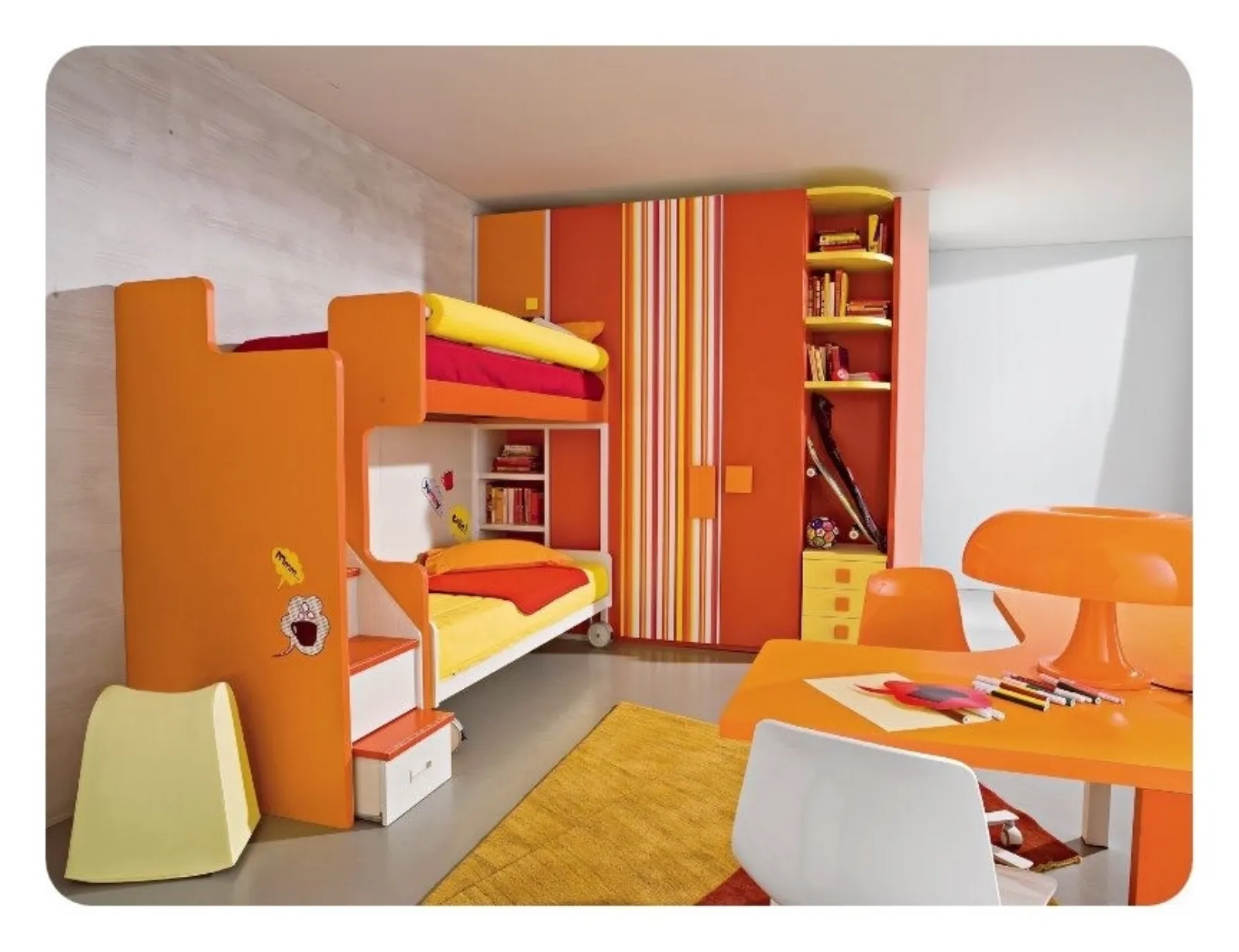 I letti a castello bambini di Mondo Convenienza, sono la scelta che coniuga il giusto prezzo a un prodotto di buona qualità, senza dimenticare un occhio al design, sempre curato e innovativo, che segue fedele il cambiamento di gusti e mode. Numerose proposte, tutte colorate, divertenti, adatte al mondo fantasioso dei più piccoli. Camerette che seguono la crescita dei bambini, in grado di trasformarsi e adattarsi alle nuove esigenze, con la semplice sostituzione o aggiunta di qualche elemento. Linee pensate per le bambine e per i bambini, con colori mirati per lei o per lui, composizioni che possono accogliere, grazie ai letti a castello due o tre bambini anche in spazi ridotti, così da lasciare "il campo" ai giochi. La linea Aurora si presenta in diverse versioni tra le quali anche quella con letto a castello. Stesso discorso per i modelli Bit, Beta (in foto) o Eco, bellissime composizioni adattabili a ogni ambiente.