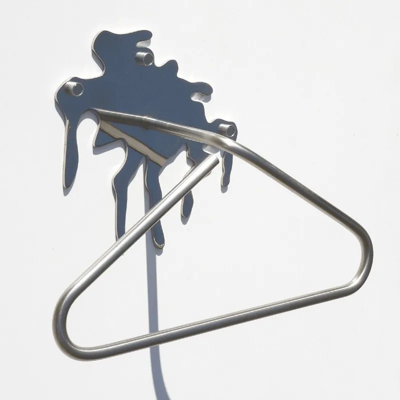 Nell’immagine vedete LiquidMetal, sempre in vendita su Smart Arredo: è un indossatore da parete in acciaio inox caratterizzato anche da un originale elemento decorativo. Le sue misure sono le seguenti: profondità 15 cm, larghezza 44,5 cm, altezza 30 cm.